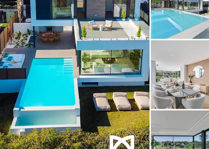 Vacation Marbella I Villa Chic, Cutting-Edge Amenities, Private Heated Infinity Pool, Golf Front Location, Cinema Room oferuje wyposażony aneks kuchenny, a także miejsce do jedzenia i jadalnię na świeżym powietrzu dla wygody gości. Do dyspozycji Gości są również kuchenka mikrofalowa, czajnik elektryczny i lodówka. Dojazd samochodem na lotnisko Malaga zajmuje 52 min.